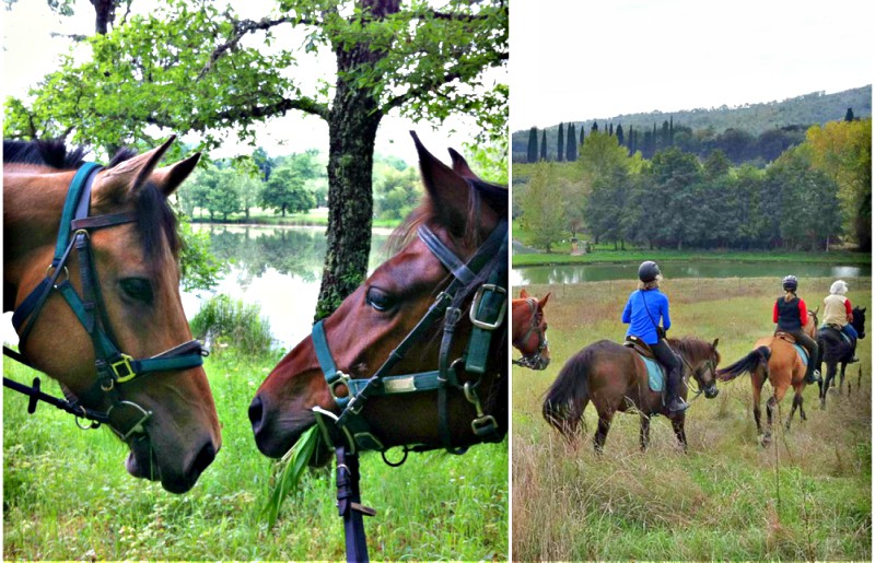 Your rides take you not only across olive groves and hills clad with extensive woodland but also through vineyards, where the gentle canters between the rows are safe even for the less expert rider. Then you can come back to the farmhouse for one of Franca’s delicious meals, where you will encounter the best of Tuscan farmhouse cooking accompanied by ruby-red Chianti wine. (They don’t count how many glasses you drink.) They can also organise wine-tasting at a couple of wineries in the nearby Chianti Classico region.