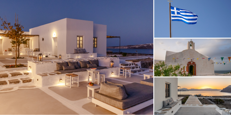 Escape the destination wedding tourist traps and immerse yourself in the true essence of Greece at SANTA IRINI RETREAT! A hidden gem on the tranquil island of Therassia, this exclusive hire wedding venue has breath-taking views of the Caldera and nearby islands, while enjoying a soothing Mediterranean atmosphere.
