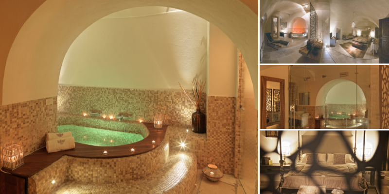 decorated with marvellous mosaics and a breath-taking circular jacuzzi hot tub is