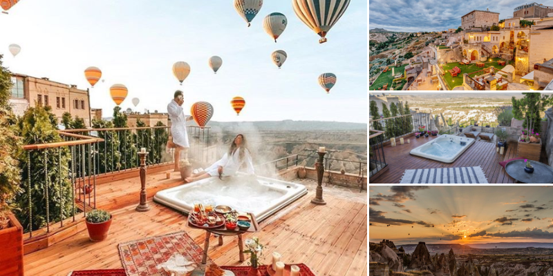 Taskonaklar offers an unforgettable and unique experience, with deluxe rooms and suites carved into the natural caves of Uçhisar. Couples