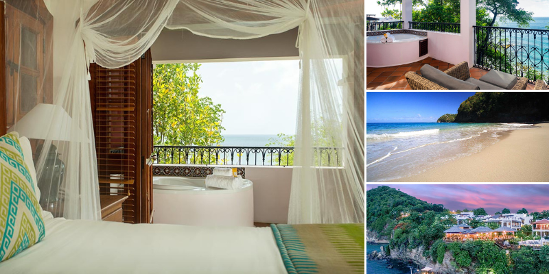 Cap Maison Resort & Spa rests on the edge of a cliff overlooking the Naked Fisherman Beach and the beautiful blue waters of the Caribbean Sea. Choose the ocean view suites with private hot tubs on the balcony