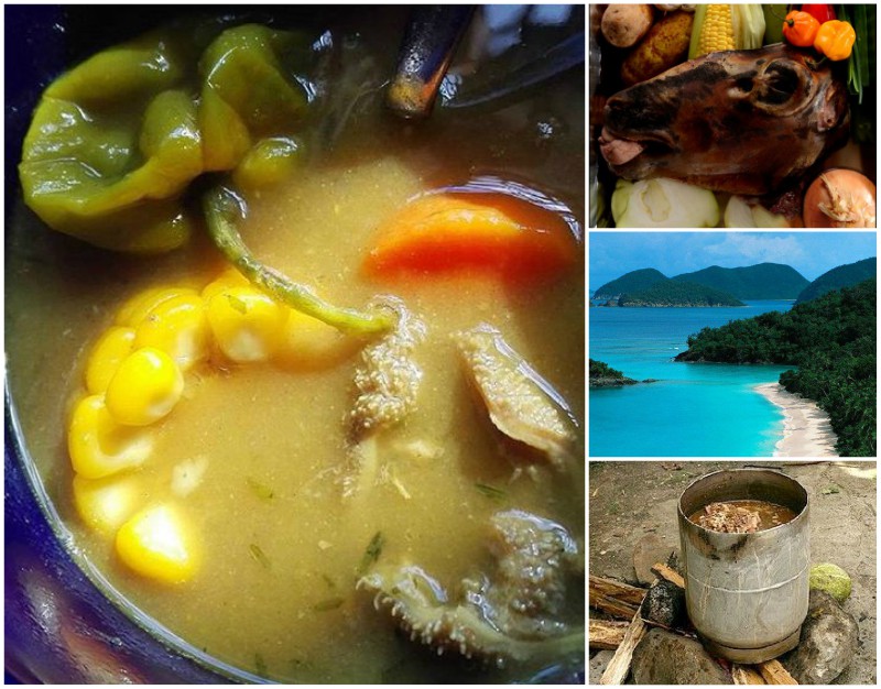 Mannish Water is a hearty soup made with “all” the relevant parts of a ram including the head, organs and testicles and then stewed for hours with ground provisions and local seasonings.